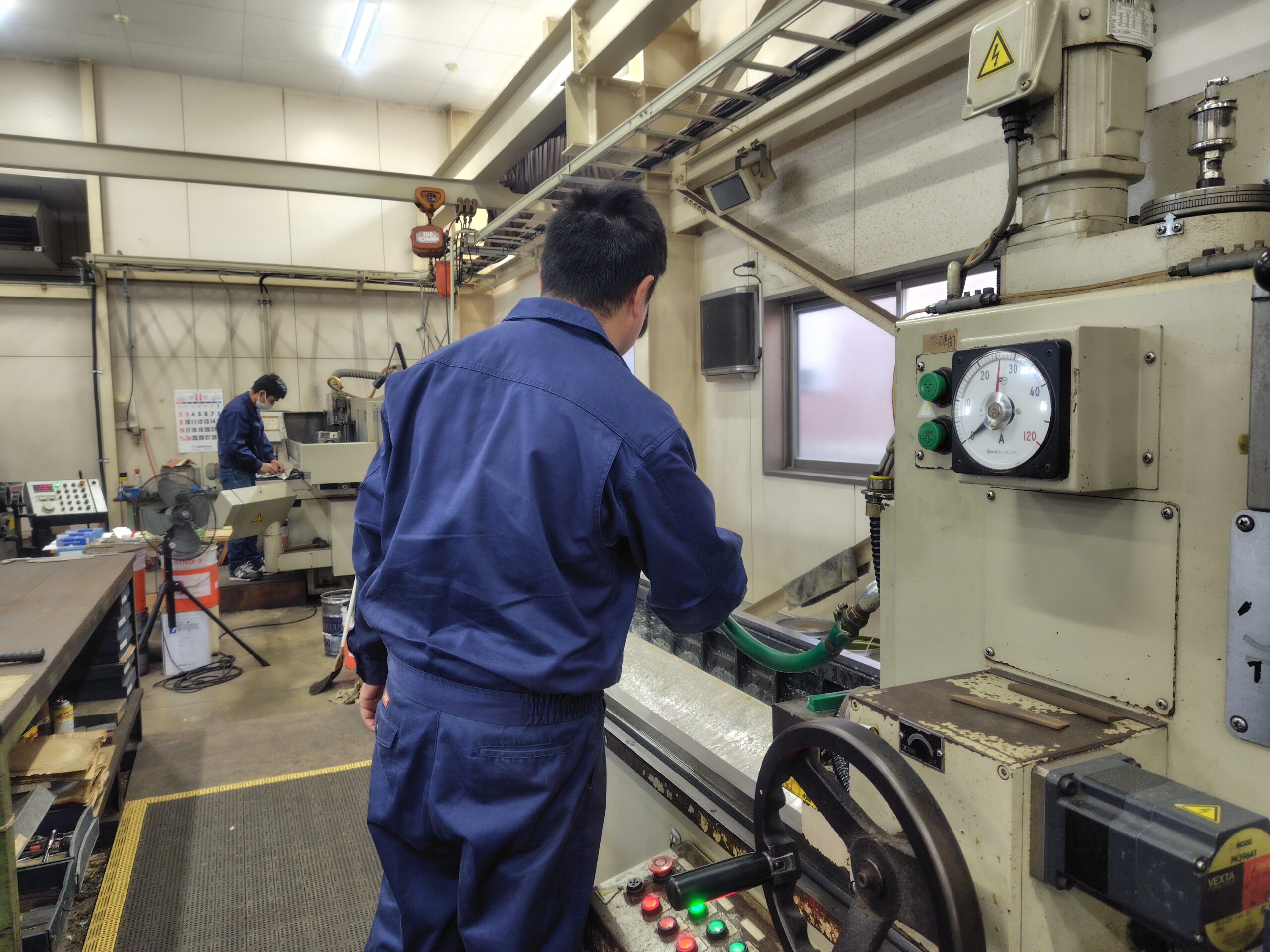 機械メンテナンス毎日簡単な掃除はしますが、定期的に機械メンテナンスをします。日々の使い方やメンテナンスで研磨精度に影響しますので大切な仕事です。